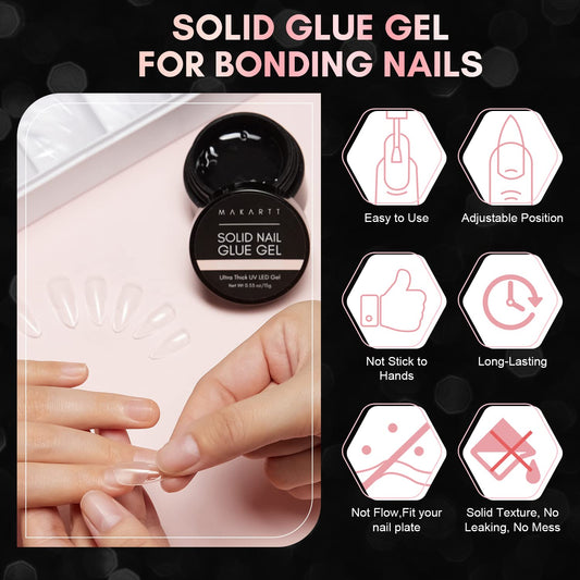 Nail Tips and Glue Kit: 15ML Solid Gel with 500PCS Almond Medium Soft Tips, Full Cover Pre-Buffed Nails, Portable Mini Lamp, and Base Coat for DIY Manicure Art